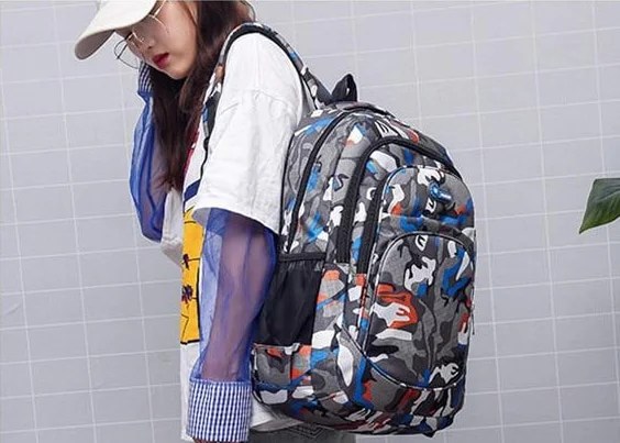 This unique camouflage waterproof backpack is ideal to be used as a school bag or can be used for any occasion. Â Most of school daily necessities can be loaded. This bag is made with high quality with material. It has 4 separate different size compartments with high quality zippers and 2 meshed side pockets. Padded carrying handle make comfortable on the go. This backpack is a perfect gift!